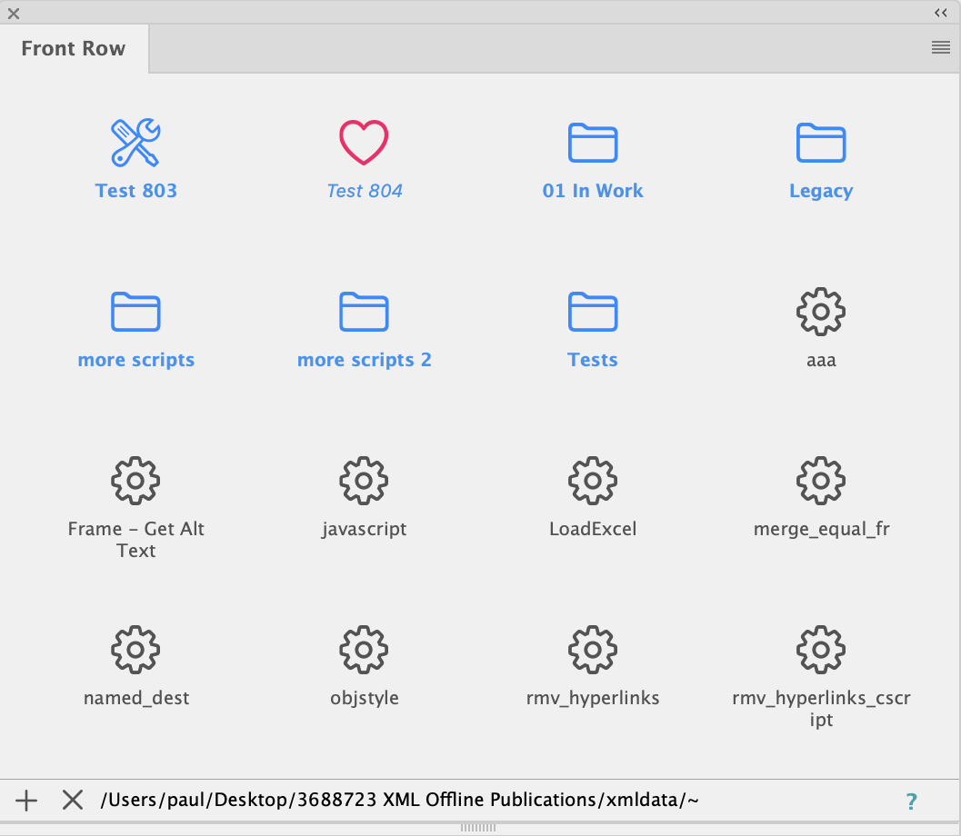 [Ab v5.0 R37360] Die in Front Row angezeigten Einträge können explizit nur für InDesign®, Illustrator® und/oder comet_pdf zugelassen sein. Für die aktuelle Anwendung nicht zugelassene Aktionen werden in der Palette nicht angezeigt. Weitere Informationen dazu finden Sie hier.